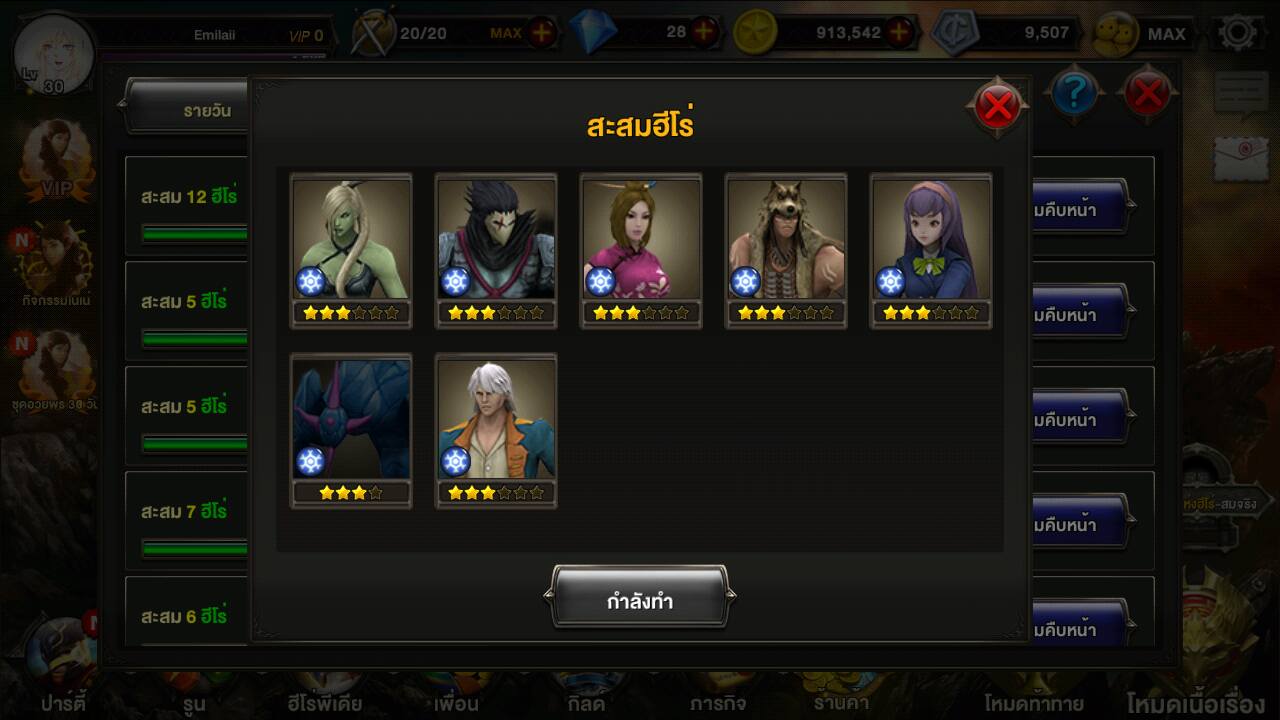 เร่งเก็บ เควสสะสมฮีโร่ โดยพลัน... หากทำภารกิจต่างๆ ในหัวข้อที่ผ่านมาไปหมดแล้ว แล้วพลังงานดันเหลือๆและเวลาเล่นของเราก็มีเหลือเฟือ มานี่เลยครับ มาไล่เก็บเควสสะสมฮีโร่ เพียงแค่ได้ฮีโร่เหล่านี้หรือจะดรอปตามด่านก็ได้ เพียงสะสมให้มันครบสว่างทุกตัว ก็รับไปเลยเพชรมากมายที่ในเควสนั้นๆจะให้ เพชรที่ได้จากเควสนี้บอกเลยว่า มูลค่ามันสูงเอามากๆ!!