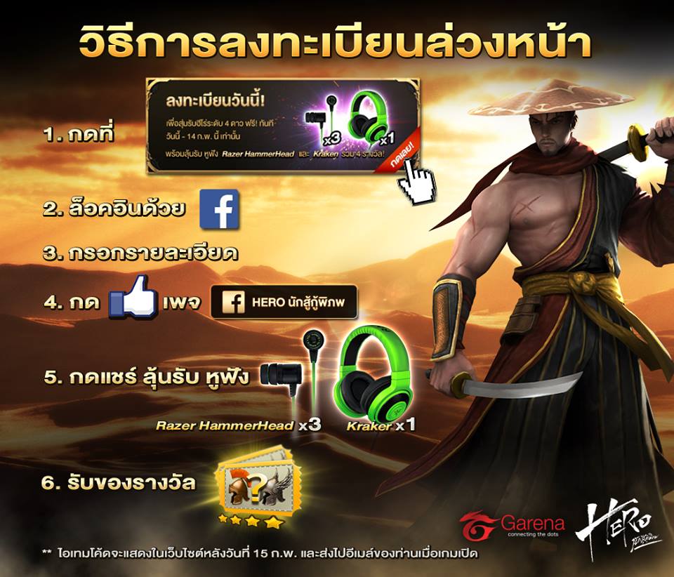 หลักจากปิด CBT กันไปเป็นที่เรียบร้อยนะครับ สำหรับเกม HERO นักสู้กู้พิภพ จากทางค่าย Garena Thailand สำหรับเกมนี้หากใครที่ยังไม่รู้จัก จะบอกให้อีกครั้งคร่าว เกมนี้เป็นเกมแนว Action RPG ที่เราผู้เล่นจะได้รับบทเป็น แม่ทัพ ที่ต้องคอยบริหารจัดการปาร์ตี้ของ ฮีโร่ และเหล่าวีรชน หรือพวกขุนพลดังๆ ในตำนาน คอยนำพวกเค้าออกไปต่อสู้กับเหล่าปีศาจร้ายที่หมายจะยึดครองโลก... ภายในเกมยังมีคอนเท้นท์ต่างๆน่าเล่นอีกมากมาย ไม่ว่าจะเป็นการผจญภัย ,ปีนหอ 100 ชั้น 1,000 ชั้นก็ว่าไป ,PvP โหมดสุดมันส์ ขอยกระบบมาคร่าวๆละกัน ส่วนในเรื่องของภาพกราฟฟิคในเกม ผมก็คงต้องบอกเลยว่ามันสวยมาก รายละเอียดต่างๆทำมาดีเลยทีเดียว และยังเป็นเกมที่เคยติดท็อปๆเกาหลีมาแล้วด้วย แถมตอนนี้ก็ไปไกลถึง Season 2 กันไปแล้ว เอาล่ะ..จะไม่โม้มากละ จะขอเข้าเรื่องเลยละกัน ทางผู้ให้บริการเกม HERO นักสู้กู้พิภพ ตอนนี้เค้าได้เปิด ให้เหล่าผู้เล่นไปลงทะเบียนเกมนี้ เพื่อรอคอยวันเปิดจริงในเร็วๆนี้กัน อ่ะฮ่าา..แน่นอนว่าไม่ได้เปิด ลงทะเบียนกันธรรมดาๆ ยังมีสิทธิ์ลุ้นรับของแรร์แจ่มๆอีกด้วย เรียกได้ว่า มาลงทะเบียนเล่นเกมง่ายๆแล้ว ยังมีโอกาสลุ้นของอีก โดยมีรายละเอียดและของรางวัลมีอะไรกันบ้างไปดูกันเลยย...