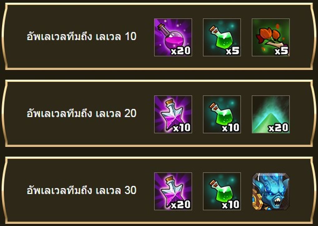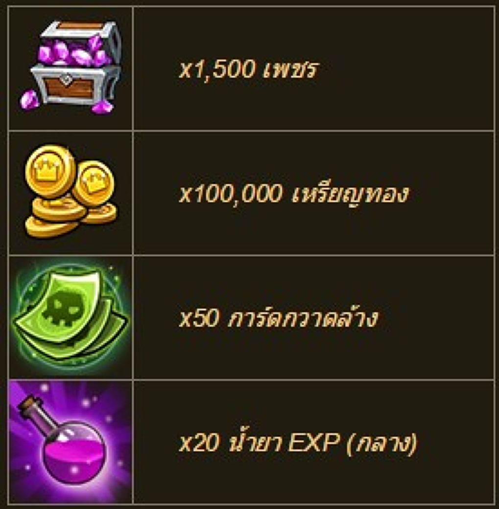 ของรางวัลเมื่อเล่นถึงเลเวลที่กำหนด