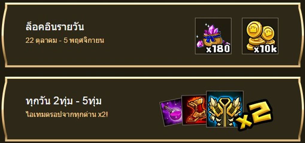 กิจกรรม ล็อคอินรายวัน และ ล็อคอินเวลา 2ทุ่ม - 5ทุ่ม