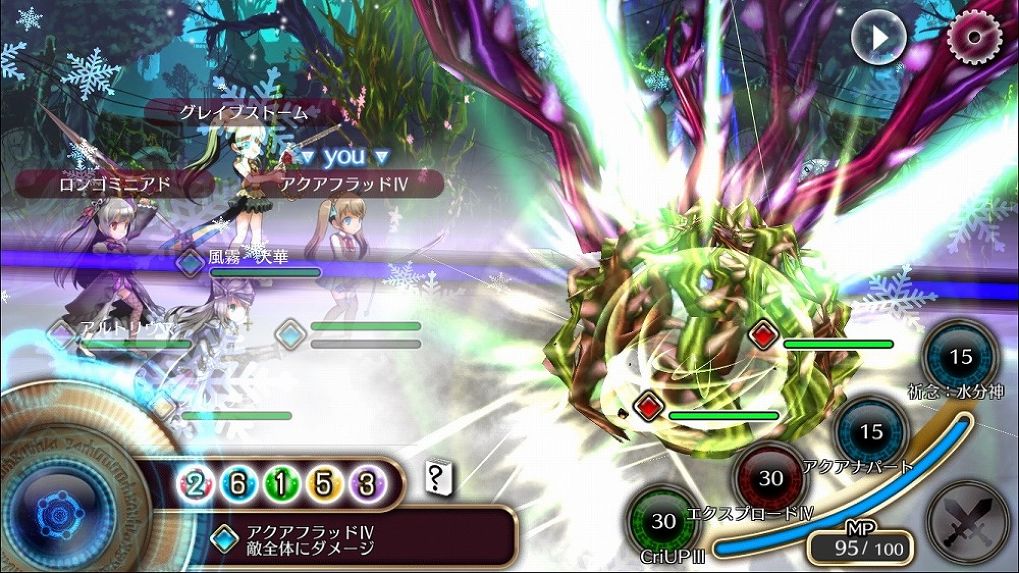 เราจะบังคับตัวละครแค่หนึ่งตัวที่เหลือจะเคลื่อนไหว Auto  ตัวละครจะใช้เวทเอเลเมนท์โดยการใช้สกิลแต่ละทีจะเสียค่า MP แต่เมื่อเกจเต็มจะสามารถแปลงร่างและใช้สกิลได้โดยไม่เสีย MP!! ซึ่งถือได้ว่าระบบนี้ทำให้เกมน่าสนใจมากเลยทีเดียว แถมช่วงนี้ยังมีแคมเปญแจกของรางวัลเมื่อยอดผู้เล่นถึงตามจำนวนที่กำหนดอีกด้วย