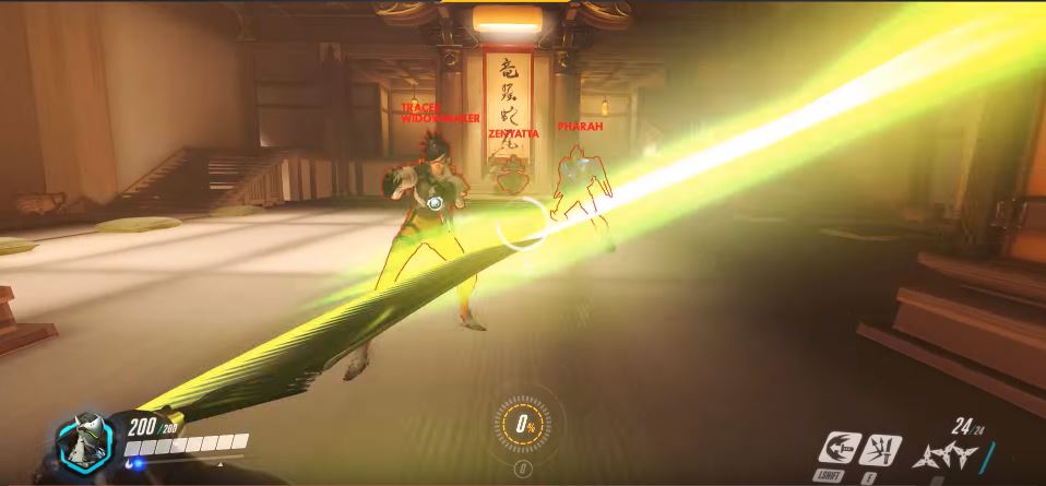 การต่อสู้กับเค้ามีหลายวิธี โดยวิธีที่ง่ายที่สุดคือการเล่นตัวที่เกนจิไม่สามารถใช้ดาบปัดกระสุนได้อย่าง Winston และ Mei เป็นต้นหรือตัวละครอย่าง Mccree เองก็สามารถจัดการเค้าได้ง่ายๆ เพียงปาระเบิดให้เกนจิติดสตั้นและระดมยิงให้ตายๆไปซะ ส่วนอันติของ Genji ถึงแม้ว่าจะน่ากลัวก็จริง แต่ถ้าหากเราไม่เผลอให้เค้าเข้ามาได้ง่ายๆ ก็เป็นการยากที่จะไล่ฆ่าเราไปทีละคน เพราะเราสามารถที่จะรุมเค้าให้ตายได้ง่ายๆ เพราะ Genji ตัวบางมาก(แต่ต้องระวัง Deflect ให้ดีนะ)Tracer เป็นตัวลครที่สามารถไปไหนมาไหนได้อย่างรวดเร็ว ด้วยการ ฺBlink ไปมา ซึ่งเหตุนี้เองทำให้เธอเป็นตัวละครที่น่ารำคาญมากสำหรับฝั่งตรงข้ามที่ต้องพบเจอ เพราะการจะฆ่าเธอให้ตายนั้นเป็นอะไรที่ทำได้ยากจาการที่เธอหลบไปมา และยังมีสกิลเอาตัวรอดอย่าง Recall ที่ย้อนเวลาและตำแหน่งที่อยู่กลับไปในระยะเวลาหนึ่ง ทำให้เธอแทบจะเป็นอมตะเลยทีเดียวหากไม่โดนการโจมตีหนักๆและตายซะก่อน สิ่งที่เราต้องไม่ลืมคือตัวของ Tracer ไม่ใช่ตัวละครที่ทำดาเมจอย่างหนักหน่วงในชุดเดียว แต่เธอมีความสามารถในการตอดและก่อกวนศัตรูได้ดีมาก เราสามารถที่จะให้เธอทำหน้าที่สเกาท์และสอดแนมฝั่งตรงข้ามได้ด้วยการใช้ Blink ไปดูรอบๆ แล้วย้อนกลับมาโดย Recall ก็ได้เช่นกัน ส่วนเป้าหมายหลักของ Tracer นั้นส่วนมากจะเป็นสไนเปอร์ที่มักจะหลบอยู่ในแผงหลัง ซึ่งเธอส่ามารถเก็บได้ไม่ยาก(ถ้ายิงโดน) หรือก่อกวนเหล่าแท้งให้สนใจเธอละไม่มีสมาธิในการยึด Objective และแน่นอนว่ามันจะเป็นการดีมากหากเราสามารถจดจำจุดเกิดของไอเทมฟื้่นฟูเลือดได้ เพราะด้วยความว่องไวของเธอทำให้เราสามารถไปเก็บได้ก่อนใครๆ เทคนิคการใช้ท่าไม้ตายของ Tracer ท่าไม้ตายของเธออาจจะไม่ได้อลังการงานสร้างแบบตัวละคร Offense คนอื่น แต่จากความว่องไวของเธอทำให้ตัวเธอเองสามารถเจาะทะลวงไปแผงหลังของศัตรูและติดระเบิดอันเป็นไม้ตายไปยังเป้าหมายได้ง่ายๆ โดยเฉพาะแผงหลังอย่าง Bastion ที่พอรู้ตัวอีกทีก็โดนติดระเบิดไปเรียบร้อยแล้ว! แถมเธอยังหนีออกมาได้ง่ายๆด้วยสกิล Recall ทำให้แทบจะไม่ได้รับบาดเจ็บอะไรเลย (ถ้าไม่กดพลาดนะ) เนื่องจากเธอเป็นตัวละครที่ไวมากและมักจะมีปัญหากับแผงหลังของเราเสมอๆ ดังนั้น McCree จึงมักเป็นทางเลือกที่เรามักจะเห็นกันได้บ่อยๆ เพราะเค้าสามารถที่จะสตั้น Tracer ให้อยู่นิ่งๆและจัดการได้ก่อนที่เธอจะหนีไป นอกจากนี้อันติของ McCree ก็สามารถล็อคเป้าเทรเซอร์ได้อย่างรวดเร็วเพราะด้วยความที่ Tracer เลือดน้อยนั่นเองครับ หรือบางทีเราอาจจะทำเพิ่มตัวละคร Offense หรือ Tank เพิ่มก็จะทำให้ Tracer เข้ามาป่วนได้ดลำบากขึ