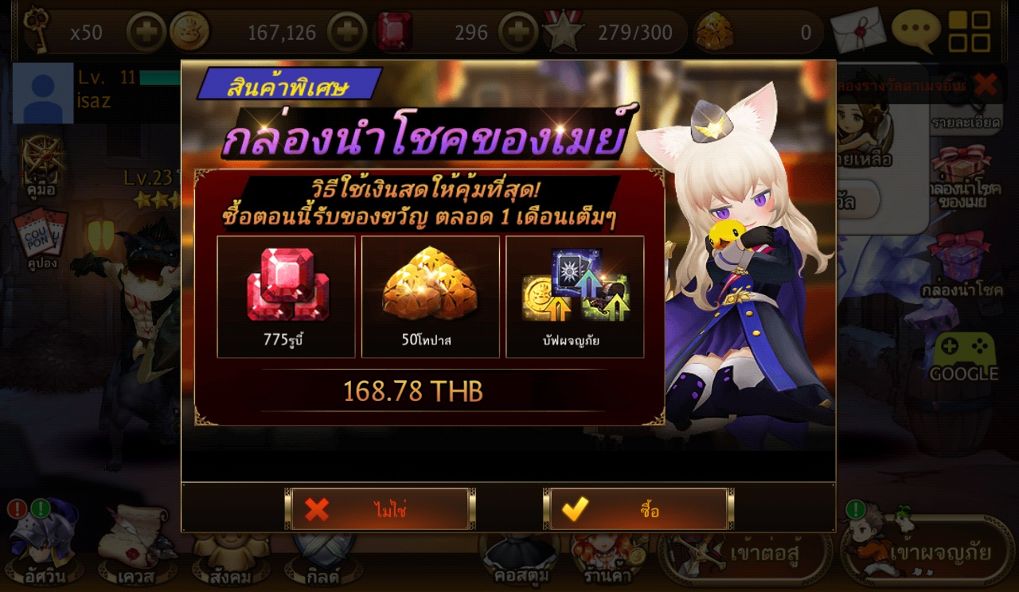 แพ๊กเกจนี้เมื่อกดซื้อจะได้รับ 200 คริสตัล และจะได้รับ 75 คริสตัลทุกวันเมื่อ ล๊อกอิน ทั้งหมด 30 วัน