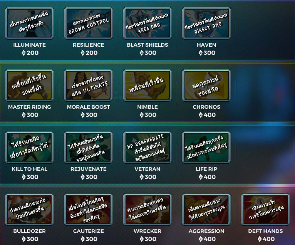 - ว่ากันด้วยเกม Moba (Multiplayer online battle arena) หลายๆคนก็คงนึกถึงเกมที่ต้องมีไอเทมจำนวนมาก ที่ต้องมานั่งทำความเข้าใจและจำไอเทมเป็นเดือนๆกว่าจะจำได้หมด ซึ่งสำหรับผู้เล่นใหม่คงเป็นอะไรที่น่าปวดหัวเพราะไม่รู้จะซื้ออะไรดี ซื้อมาผิดทีมก็ด่าจนแทบหมดกำลังใจจะเล่นต่อ บางคนถึงกับแอนตี้เกมแนว Moba นี้ไปเลยก็มี แต่สำหรับเกม Paladins นี้มีไอเทมที่ไม่ยุ่งยากขนาดที่จะต้องมานั่งปวดหัวหรือโดนทีมด่ามากมาย เพราะมีไอเทมให้เลือกซื้ออยู่เพียง 17 ชิ้นพร้อมทั้งแบ่งตามสายให้เลยง่ายๆ ซึ่งเลือกซื้อได้สายละหนึ่งชิ้นเท่านั้น เท่ากับว่าเราสามารถซื้อได้สูงสุด 4 ชิ้น เมื่อเลือกซื้อแล้วก็นำมาอัพเกรดเพิ่มความสามารถให้กับไอเทมได้อีกด้วย
