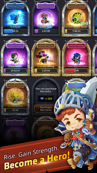โลกถูกปีศาจร้ายครอบงำ เหล่าวีรชนผู้กล้าทั้งหลายถูกคำสาปล้างสมองของจอมปีศาจทำให้กลายเป็นทาสรับใช้ เราต้องอัญเชิญนักรบผู้กล้าจากต่างโลกมาปราบเหล่าผู้คนที่ถูกล้างสมองให้คืนสติกลับมา ตัวเกมก็เป็น RPG แบบตัวละครเดินเองตบเอง สั่งใช้สกิลทำคอมโบเพิ่มพลังโจมตีได้ด้วย เอฟเฟคโจมตีอลังการงานสร้าง มีการจัดอันดับ และ PVP ฉกเงินคนอื่น มีแรงกระตุ้นให้เล่นเกมอย่างต่อเนื่อง แถมมีสิทธ์พิเศษจาก VIP เป็นขั้นๆอีกด้วย ตัวละครเท่าที่ดูน่าจะอัพสูงสุดได้ 6 ดาว คนที่เปิดตัวละครได้ดาวน้อยๆแต่อัพต่อได้ก็ถือว่าไม่น่าเจ็บใจนัก อัพต่อเรื่อยๆก็ได้ ยิ่งในเกมมีค่ายทหารที่ใช้เพิ่มเลเวลได้อย่างรวดเร็วด้วยแล้ว ก็ไม่ค่อยน่าเป็นห่วงเรื่องการใช้เวลาเก็บเลเวลเลย