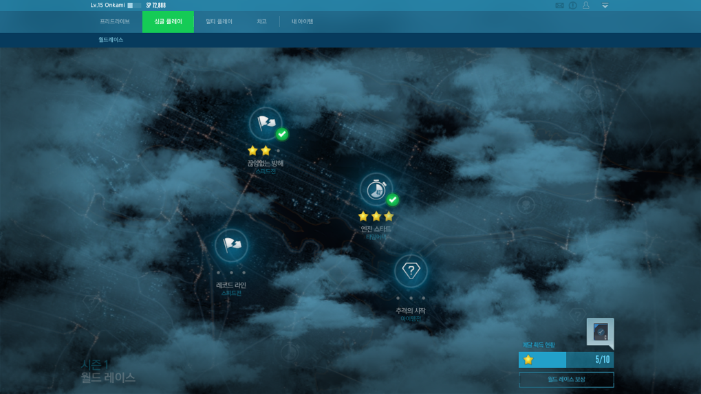 โหมดการเล่นของเกมนี้จะมีทั้งแบบเล่นคนเดียวและออนไลน์กับเพื่อนๆได้ โดยโหมดการเล่นคนเดียวนั้นก็จะมีสนามต่างๆให้เลือกเล่น มีทั้งโหมด Sprint (แข่งรถทางตรง) Time Attack (จับเวลา) โดยแต่ละสนามจะมีเงื่อนไขพิเศษเพื่อรับไอเท็มภายในเกมยกตัวอย่างเช่น สนามนี้มีเงื่อนไขพิเศษให้ดริฟท์เข้าโค้งโดยรวมระยะ 500 เมตร,เข้าเส้นชัยเป็นลำดับที่ 3 หรือสูงกว่า เป็นต้น และเมื่อเก็บดาวจากการทำเงื่อนไขพิเศษสะสมจนครบตามที่กำหนดก็จะได้รับไอเท็มเป็นพวกของแต่งหรืออุปกรณ์เพิ่มสมรรถนะรถอีกด้วย