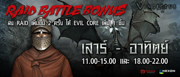2.   หากนักรบสามารถผ่าน Battleนั้นๆได้ในระหว่างช่วงเวลากิจกรรม จะได้รับ Evil Core เพิ่มอีก 1 ชิ้นจากจำนวนที่ได้รับตามปกติ