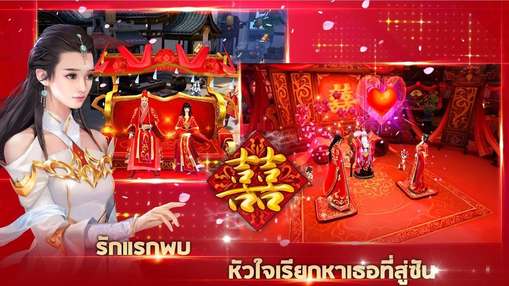 จอมยุทธ์และคู่รักของท่านจะต้องอยู่ในค่ายเดียวกัน และมีค่าสนิทตามที่กำหนดไว้กันจึงจะแต่งงานได้ค่าสนิทนั้นหาได้จากร่วมทีมลงดันเจี้ยนฆ่ามอนสเตอร์และส่งดอกกุหลาบให้กันและกันเมื่อมีของแทนใจ คือ“เชือกถักรวมใจ”ท่านจอมยุทธทั้งหลายสามารถไปจดทะเบียนได้ที่เฒ่าจันทราซึ่งจะเป็นสักขีพยานว่าการแต่งงานครั้งนี้จะไม่ลาจากใช้ชีวิตร่วมกันหมั้นหมายสามชาติหลังจากแต่งงานแล้วจอมยุทธ์ทั้งสองจะได้รับสกิลคู่สามีภรรยา“ใจผสมใจ” ได้ BUFF ค่าประสบการณ์ร่วมกันและฉายาคู่สามีภรรยาเพื่อประกาศให้โลกได้รับรู้และเป็นสักขีพยานความรักของพวกท่านได้อีกด้วย