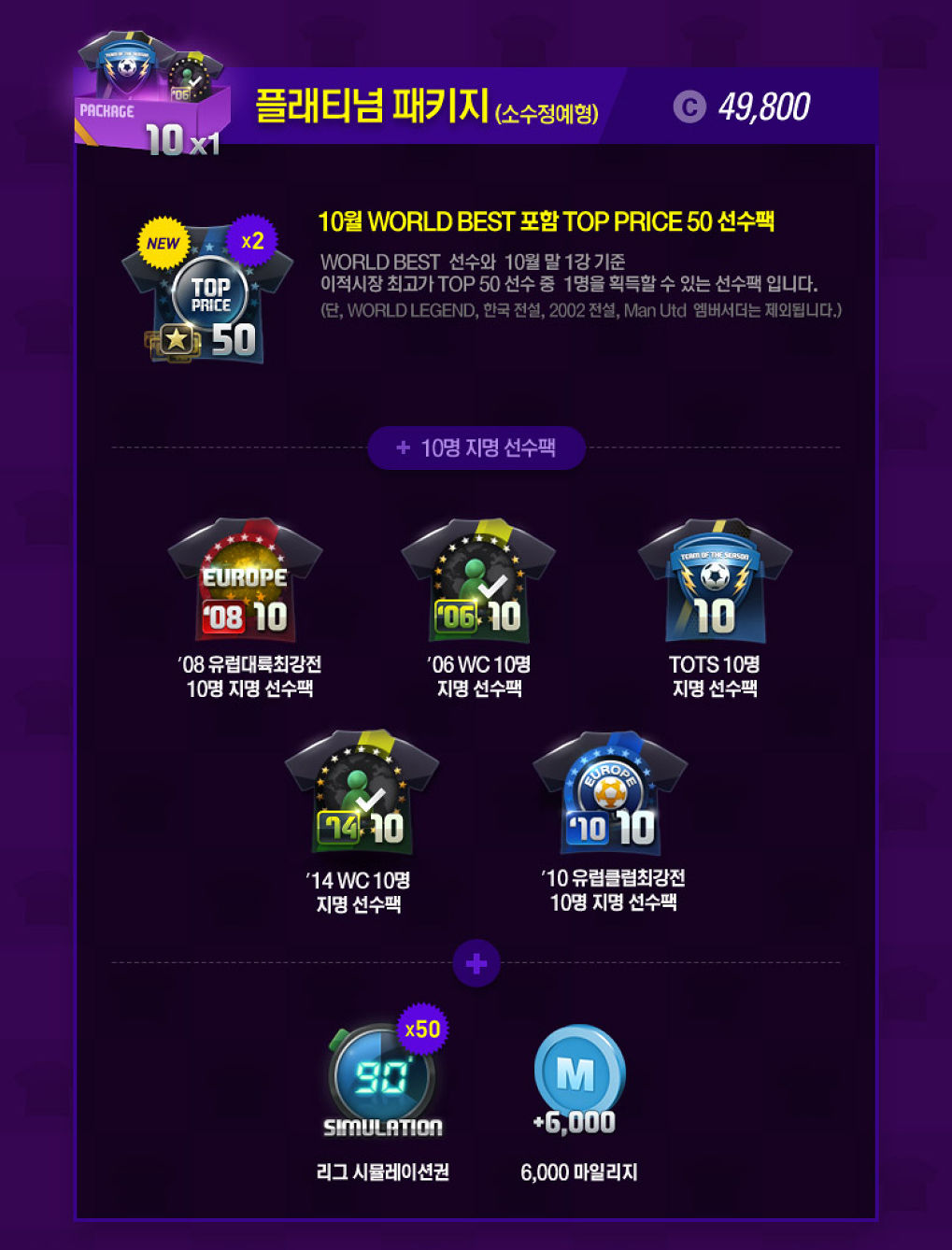 ’10 EUROPE CLUB 50 package โดยคัดเลือกนักเตะจาก 50 คน x 3