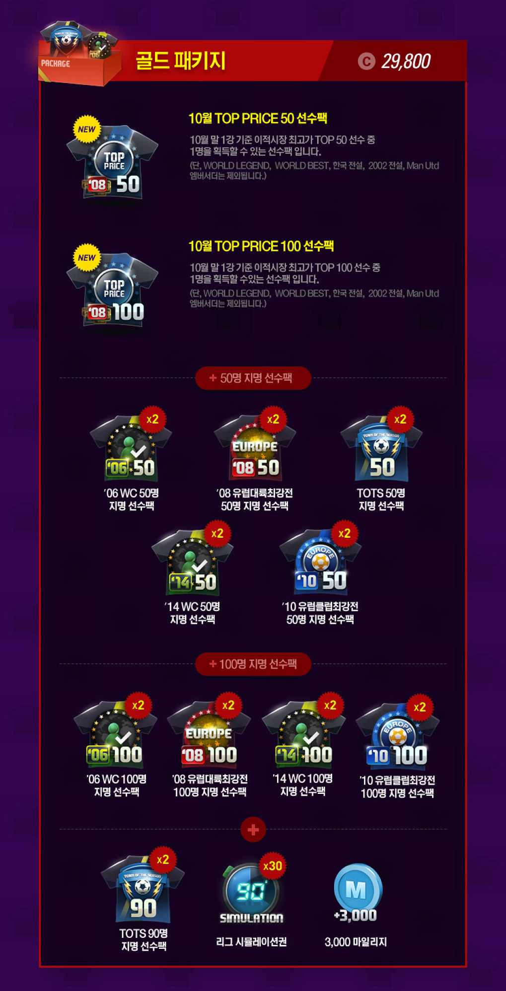 ’10 EUROPE CLUB 30 package โดยคัดเลือกนักเตะจาก 30 คน x 3