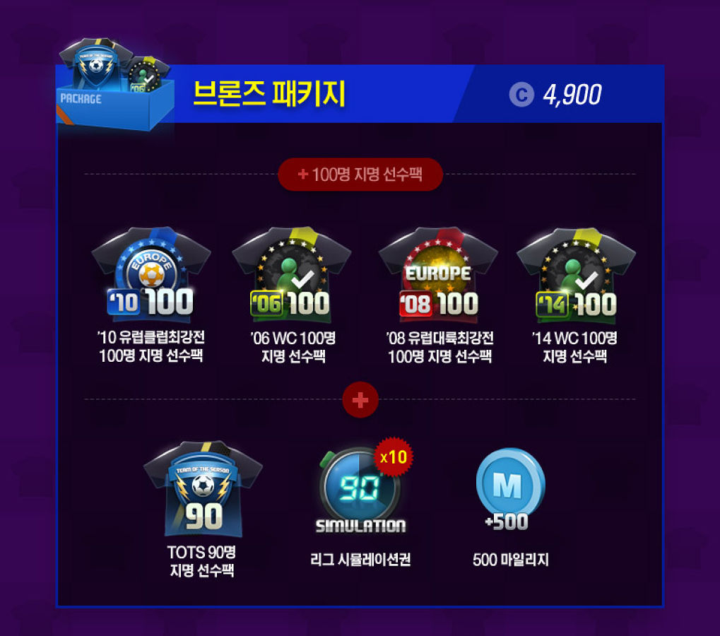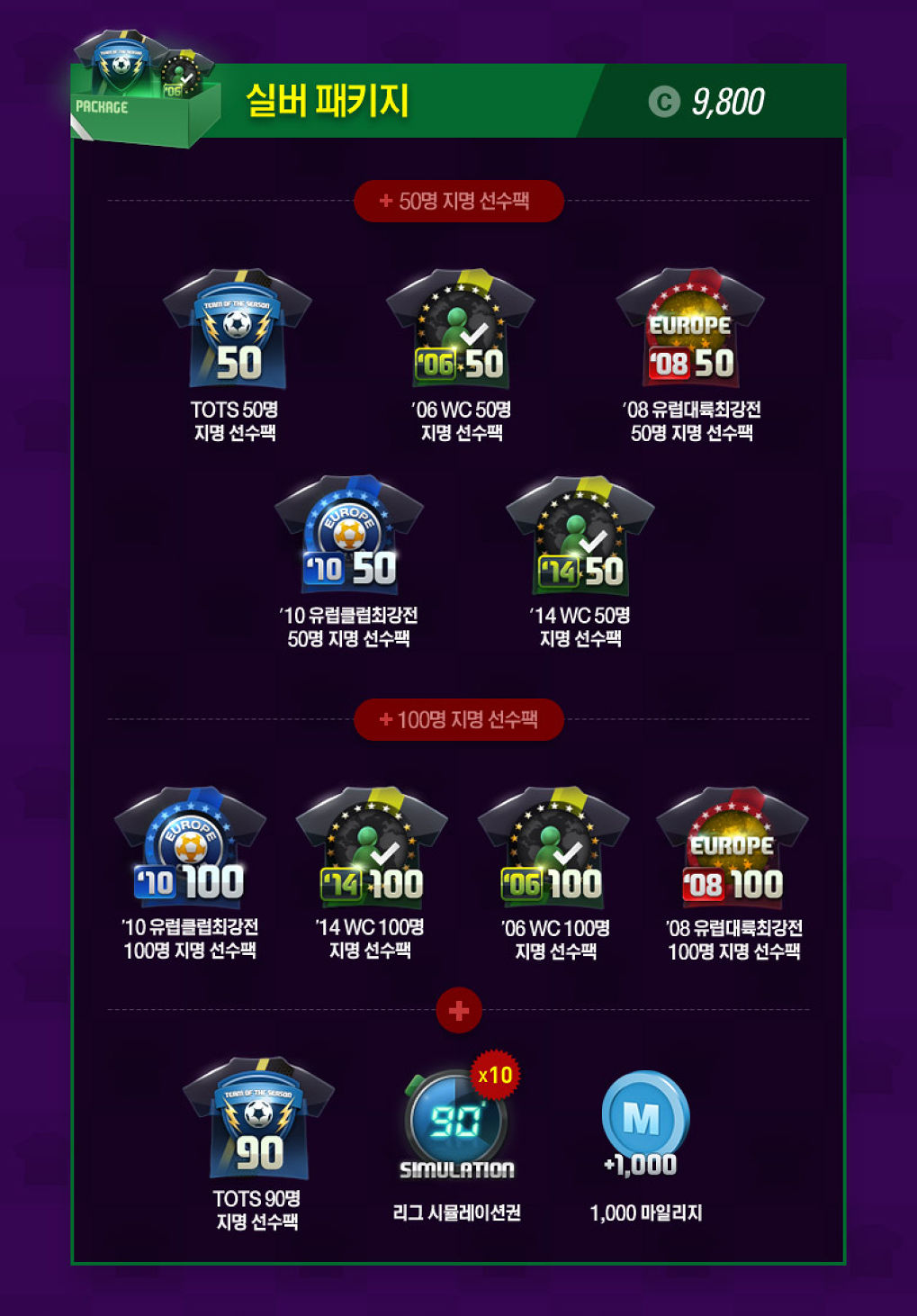 ’08 EUROPE 100 package โดยคัดเลือกนักเตะจาก 100 คน x 2