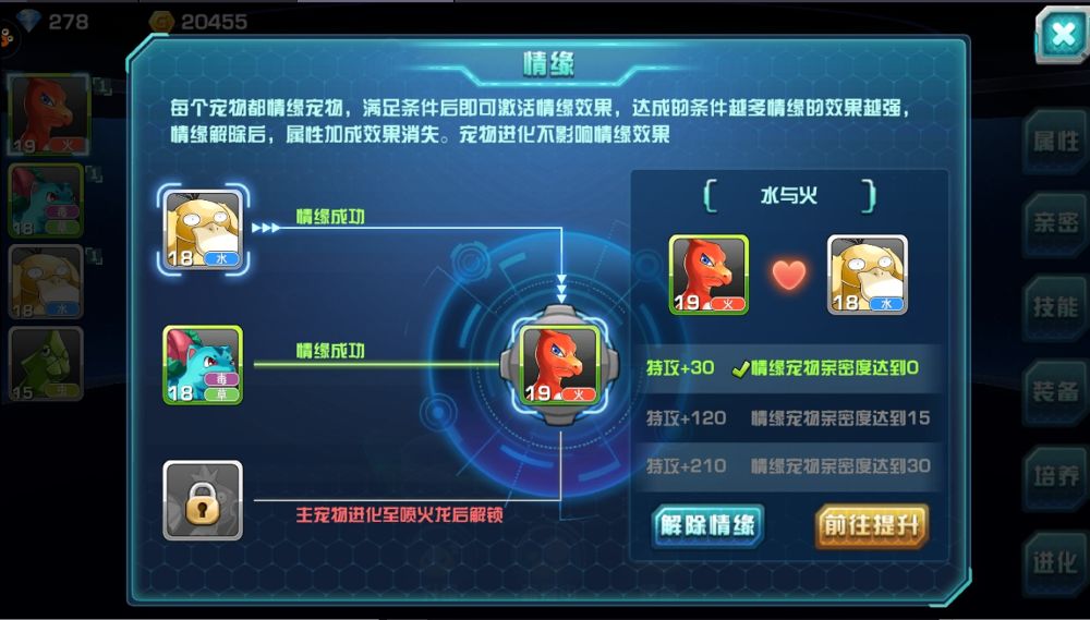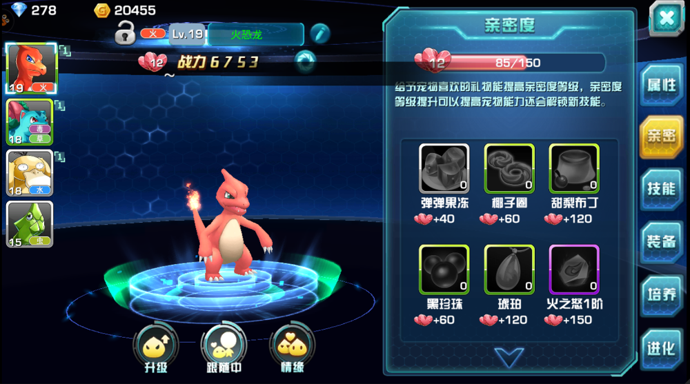 เอาขนมและของเล่นให้โปเกม่อน เพิ่มความสัมพันธ์ให้สูงขึ้น ก็จะได้ท่าโจมตีมากขึ้น เพิ่มค่าสถานะด้วยนะ ได้ท่าโจมตีใหม่ตอนระดับ 10 และใส่ของประดับ ของส่วมใส่ได้ตอนระดับ 14 (และอื่นๆอีกมากมาย)