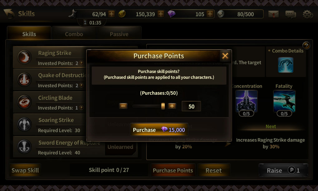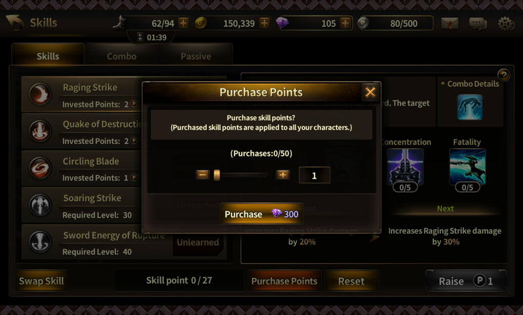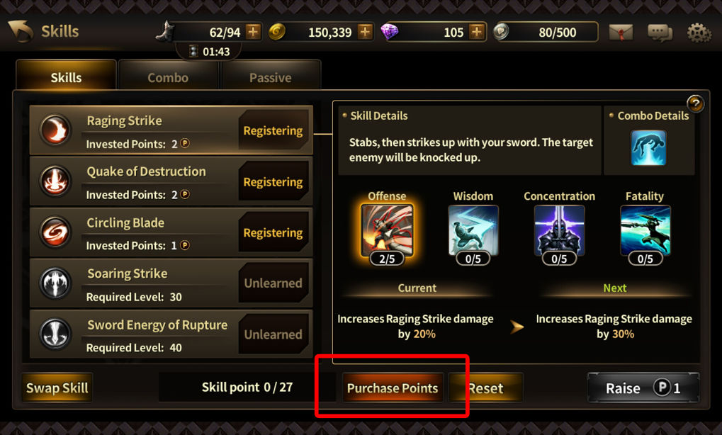 เข้ามาแล้วกดปุ่มซื้อ Skill Point ด้วยเพรช