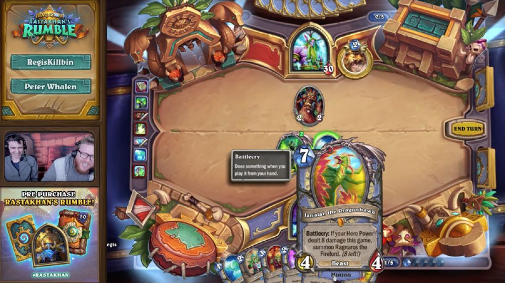 ความสามารถของ "Jan’alai, the Dragonhawk" คือ ร่าย 7 มานา จะได้สัตว์ 4 - 4 Battlecry : ถ้าหากสร้างความเสียหายจาก Hero power ครบ 8 ดาเมจ ในเกม จะเรียก Ragnaros The Firelord ออกมา ซึ่งถ้าเราสามารถทำให้ Hero power ครบตามจำนวนก่อนเทิร์นที่ 7 ได้จะถือว่าได้เปรียบพอสมควร โดยแน่นอนถ้าเจอ Deck ไวๆ ก็อาจจะต้องกดยอมไปก่อนเช่นกัน แต่โดยรวมแล้วถ้าเราสามารถยื่นไปถึงช่วงกลางเกมได้ Deck ก็จะทรงพลังขึ้นมาทันที