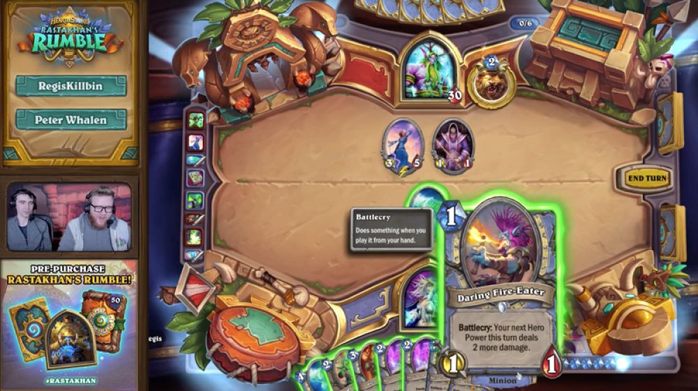 ใกล้เข้ามาทุกทีแล้วสำหรับจุดการ์ด Expansion ใหม่ที่จะเข้ามาในเกม Hearthstone อย่าง Rastakhan’s Rumble. แต่ก่อนจะถึงเวลานั้นเรามาแอบส่องกันดีกว่าว่ามีการ์ดไหนน่าสนใจกันบ้าง โดยเฉพาะการ์ดของสาย Mage ที่จะเปลี่ยนแนวการเล่นในรูปแบบใหม่ให้เพื่อนๆ ได้สัมผัสกันกับ 3 การ์ดใหม่ทรงพลัง ผู้ให้กำเนิด Mage Ping!! ที่สไตล์การเล่นจะออกไปทาง Mid Range ซึ่งคาดว่าเพื่อนที่เคยเล่น Hunter และต้องกด Hero Power เป็นประจำอยู่แล้วก็น่าจะชอบแนวนนี้เป็นอย่างดีเลย โดยการ์ด 3 ใบที่ว่าจะมีอะไรน่าสนใจกันบ้างไปชมกันเลย