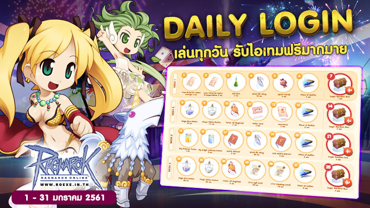ของรางวัลสำหรับกิจกรรม Daily Login ประจำเดือนมกราคม 2561