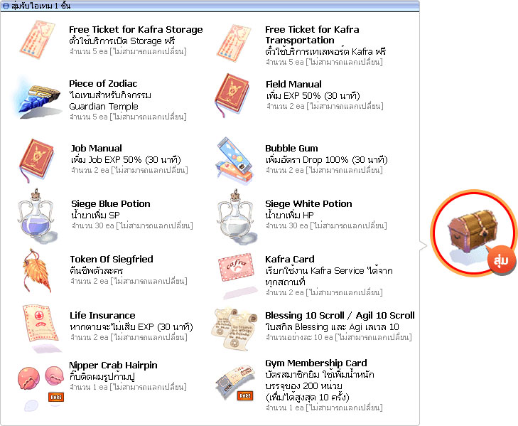 กล่องสุ่ม Login Random Box มีโอกาสสุ่มได้ไอเทมดังนี้