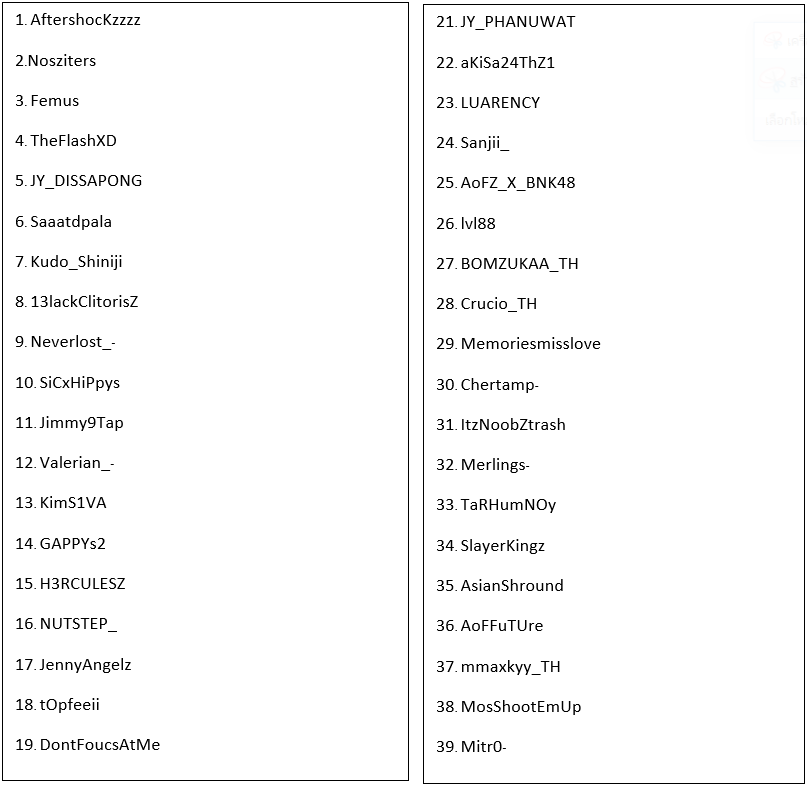 รายชื่อผู้เล่น PUBG
