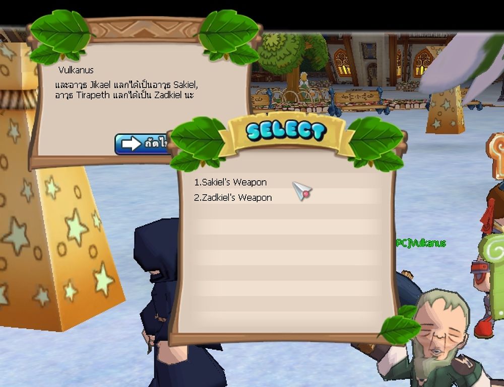 3. เลือกหัวข้อที่ 4 Sakiel/Zadkiel’s Weapon เมื่อเลือกแล้วให้คุณเลือกว่าจะแลกเอาอาวุธ Sakiel’s Weapon หรือ Zadkiel’s Weapon