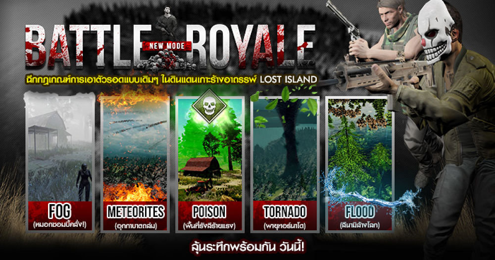 สิ้นสุดการรอคอย ฉีกกฎเกณฑ์การเอาตัวรอดแบบเดิมๆที่คุณเคยผ่านมากับโหมดใหม่ของเกม Infestation อย่างโหมด Battle Royale ที่จะทำให้คุณต้องลุ้นระทึกทุกวินาที! การผจญภัยเอาตัวรอดในดินแดนเกาะร้างอาถรรพ์บนเกาะ Lost lsland ฝ่าฟันภัยพิบัติทางธรรมชาติที่หลากหลายและเหล่านักฆ่าคนอื่นๆที่จ้องเอาชีวิตคุณ ไม่มีพื้นที่ปลอดภัย ไม่มีความไว้ใจใดใดทั้งสิ้น ทุกสิ่งรอบตัวคือความโหดร้ายบนเกาะแห่งนี้ จงทำทุกวิถีทางเพื่อเหลือรอดเป็นคนสุดท้ายให้ได้!! รางวัลตอบแทนแสนล้ำค่าที่มาพร้อมกับยศใหม่รอคุณอยู่! ในช่วง PRESEASON นี้กฎกติกาการเอาตัวรอดใน Battle Royale