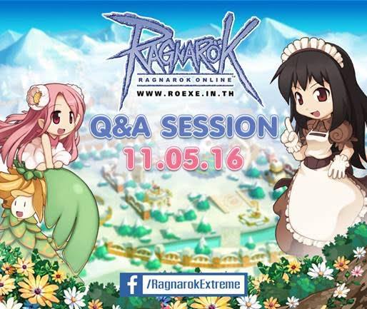 ใกล้เข้ามาทุกทีแล้วกับเวลาที่เหล่าสาวก Ragnarok online จะก้าวเข้าสู่บ้านใหม่เร็วๆนี้ ซึ่งทางบริษัท Electronics Extreme หรือ EXE ได้จัดกิจกรรมดีๆขึ้น โดยจะเปิดให้ผู้เล่น "ถามคำถาม" ที่คุณอยากถามมากที่สุด 3 คำถาม (หรือจะไม่ถึงก็ได้) ซึ่งแต่ละคำถามนั้น ไม่ใช้คำหยาบ ไม่ก่อดราม่า และไม่รุนแรงกระทบถึงจิตใจผู้ถูกถาม สามารถโพสต์ได้เลยตั้งแต่วันนี้เป็นต้นไป โดยงานจะเริ่มในวันที่ 11 พฤษภาคม 2016 ใครมีอะไรค้างคาในใจเตรียมคำถามไว้ให้ดีๆนะ!!