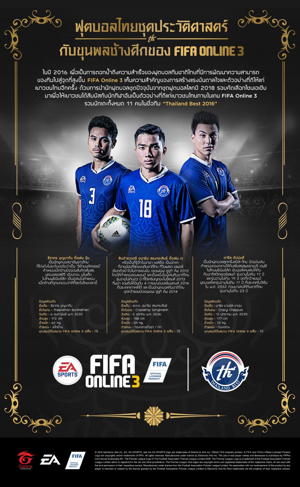 อย่าลืมติดตามข่าวสารและรายละเอียดเพิ่มเติมเกี่ยวกับนักเตะไทยชุด Thailand Best 2016 ได้ที่ Facebook : EA Sports FIFA Online 3 Thailand และ https://apps.garena.in.th/fo3/compendium
