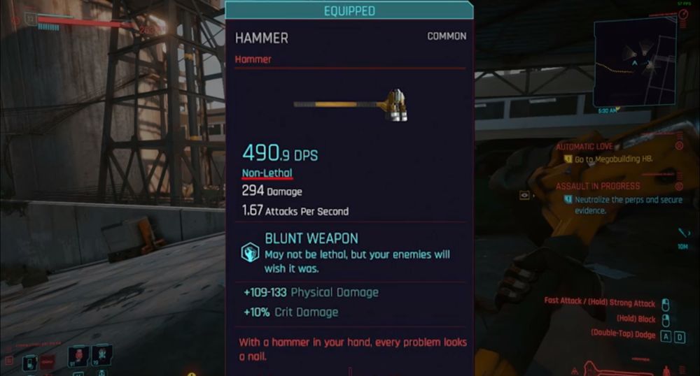 พบผู้เล่นเกม Cyberpunk 2077 เจอค้อนที่เป็นอาวุธชนิด "ทำให้คนแค่สลบ" แต่พอใช้จริงคนดันหัวระเบิด!!!