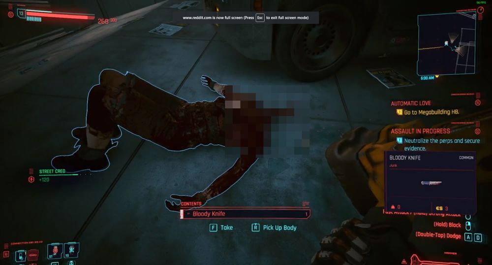 อย่างไรก็ตาม บนเว็บไซต์ Reddit ก็มีผู้ใช้งานนามว่า DjVolume ได้ตั้งกระทู้ภายในหมวดเกม Cyberpunk 2077 พร้อมโพสต์คลิปการเล่นมาให้ชมกันว่าเขานั้นได้เจอค้อน (Hammer) ซึ่งผู้สร้างได้เขียนไว้ตรงอธิบายว่าเป็นอาวุธชนิด "ทำคนได้แค่สลบ" แต่พอเขาได้ลองเอาไปทุบหัวชาวเมือง NPC ก็กลับพบว่าส่วนหัวนั้นกลับได้ระเบิดเลือดสาดออกมาเสียอย่างงั้น!!! ซึ่งทำให้ผู้เขียนสงสัยมากๆ เลยว่าปี 2077 คนยังมีชีวิตได้แม้โดนทุบหายหัวหายงี้หรอ!?
