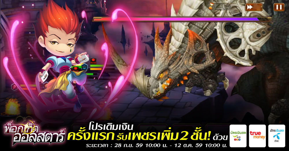 แค่เห็นกติกาและวิธีการเล่นก็น่าเล่นแล้วใช่มั้ยละ และ ที่สำคัญช่วงนี้มีโปรโมชั่นพิเศษจากเกม "พ็อกเก็ตออลสตาร์" เมื่อเติมเงินผ่านช่องทาง MOL ด้วย เพียงเติมเงินเกมด้วยบัตรเงินสด วัน-ทู-คอล!, ทรูมันนี่ และ บัตรเงินสดดีแทค ทุกราคา จะได้รับเพรชเพิ่มจากเดิมอีก 10% สามารถรับได้ไม่จำกัดจำนวนครั้ง และพิเศษเฉพาะผู้ที่เติมครั้งแรกจะได้รับเพชรเพิ่ม 2 เท่า! (เติมครั้งแรกรับ เพชร 2 เท่า + 10%) ตั้งแต่ เริ่มวันที่ 28 กันยายน 10:00 น. - 12 ตุลาคม 2559 10:00 น.เท่านั้น ติดตามโปรโมชั่นเพิ่มเติมได้ที่