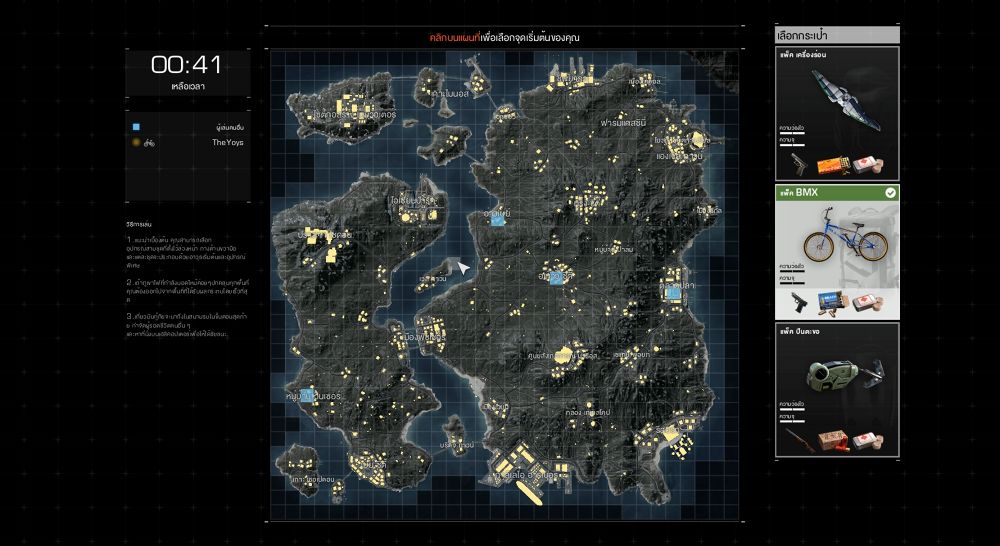 ไม่ต้องโดดร่ม แต่เลือกจุดเกิดได้เลยสำหรับเกมนี้เริ่มมาก็แตกต่างจากเกมทั่วไปแล้ว นั่นคือเราจะไม่ต้องโดดร่มลงไปยังจุดที่เราต้องการ แต่เราสามารถเลือกจุดที่เราจะเกิดได้เลยตั้งแต่ตอนเริ่มเกม และเราจะเห็นด้วยว่ามีผู้เล่นอื่นเลือกเกิดตรงไหนบ้าง ส่วนนี้ก็สามารถทำให้เราตัดสินใจได้ว่าจะเล่นเกมไวเข้าปะทะแบบมันส์ๆ หรือไปเกิดไกลๆคนอื่น ฟาร์มก่อนแล้วค่อยไปลุย ถือว่าเป็นการเปิดทางเลือกให้กับผู้เล่นที่ดีมากๆครับในเกมนี้นอกจากอาวุธหลักที่เราจะต้องวิ่งไปหาเอาในเกมแล้ว ตอนเริ่มเกมเราจะมีไอเทมให้เลือกใช้ถึง 3 แบบด้วยกัน และแต่ละแบบก็แถมอาวุธพื้นฐานติดตัวมาให้แต่เกิดอีกด้วย เอาเป็นว่าถ้าอย่างน้อยลงไปเกิดแล้ววิ่งหาปืนไม่เจอ ก็ยังมีอาวุธพื้นฐานพวกนี้ไว้ป้องกันตัวครับ โดยอุปกรณ์เสริมทั้ง 3 แบบจะมีดังนี้- เครื่องร่อน ใช้สำหรับร่อนบินไปในอากาศได้ แต่ปัญหาคือมันจะใช้ได้ก็ต่อเมื่อคุณปีนขึ้นไปบนตึกสูงๆแล้วร่อนลงมา ถามว่ามีประโยชน์มากไหม ตอบเลยว่าน้อยมาก เครื่องร่อนจึงเป็นอุปกรณ์เสริมที่น่าสนใจน้อยที่สุดแล้ว