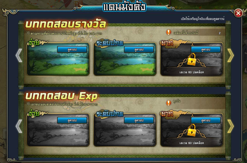 [โหมดการเล่นอื่นๆ จะปลดล็อคตามเนื้อเรื่องหรือตามเลเวลตัวละคร]