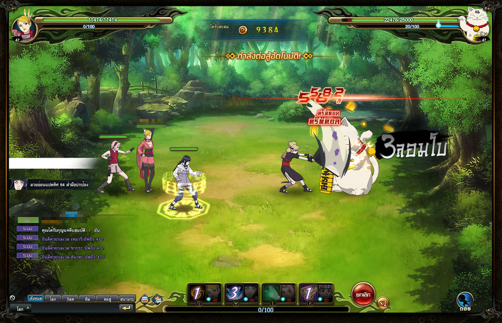 มาต่อกันที่ระบบการต่อสู้กันบ้างดีกว่าค่ะ เกม Naruto Online จะใช้แบบ RPG Turn-Base Auto Battle อย่างที่กล่าวไปข้างต้นเนอะ ระบบนี้ตัวละครในเกมจะดำเนินการต่อสู้ให้เองตามแผนและสกิลที่ผู้เล่นวางไว้ จึงไม่จำเป็นต้องใส่คำสั่งในการต่อสู้ ยกเว้นสกิลแบบ Active Skill โดยแต่ละตัวละครจะมีวิชานินจา Active คนละหนึ่งท่าที่ผู้เล่นต้องกดใช้เมื่อต้องการ หรือจะเลือกให้ Auto ไปเลยก็ได้จ้า (คำสั่ง Auto จะปลดล็อคเมื่อเล่นไปไกลระดับหนึ่งค่ะ) ส่วนท่าอื่นๆของตัวละครจะเป็นแบบใช้อัตโนมัติ เมื่อถึงเงื่อนไขตามกำหนด เช่นบางท่าใช้ตั้งแต่เริ่มต่อสู้ บางท่าจะเป็นการโจมตีต่อเนื่องเมื่อทำให้ศัตรูลอยหรือล้มลง และบางท่าจะใช้หากทำคอมโบต่อเนื่องตามกำหนดค่ะ![]()