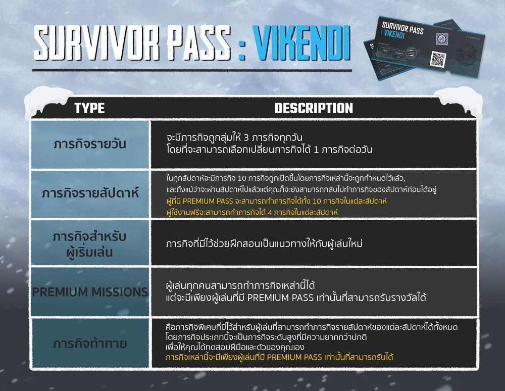 ► Survivor Pass : Vikendi คือระบบที่จะมาช่วยให้คุณสามารถสนุกกับ Vikendi ไปพร้อมๆกับการทำภารกิจหลากหลายรูปแบบที่จะมีของรางวัลพิเศษให้คุณได้รับ โดยระบบนี้จะมีในการเข้าร่วมจนถึงวันที่ 27 ก.พ. เท่านั้น !