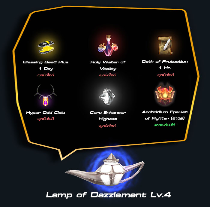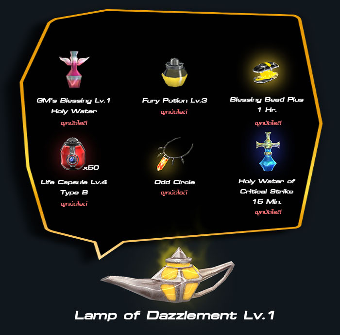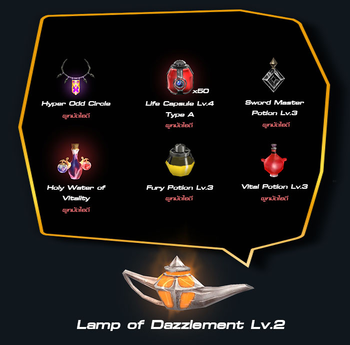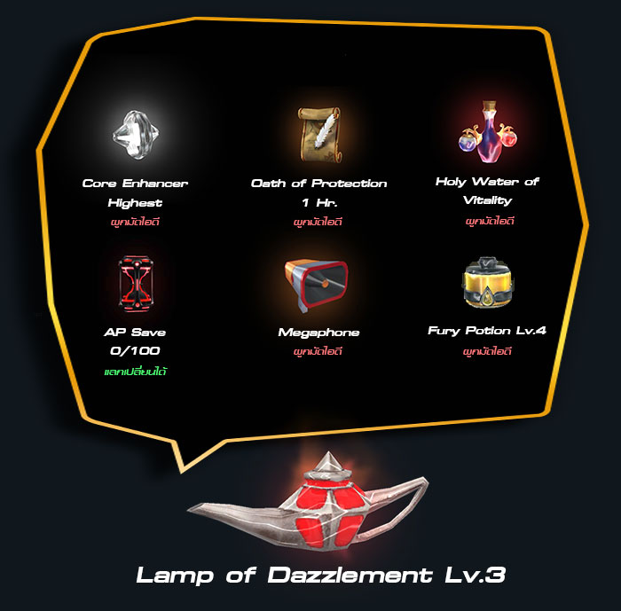 •เมื่อแลกไอเทมแล้วตะเกียงจะถูกส่งเข้าตัวละคร ผู้เล่นสามารถเปิดสุ่มไอเทมได้ทันที