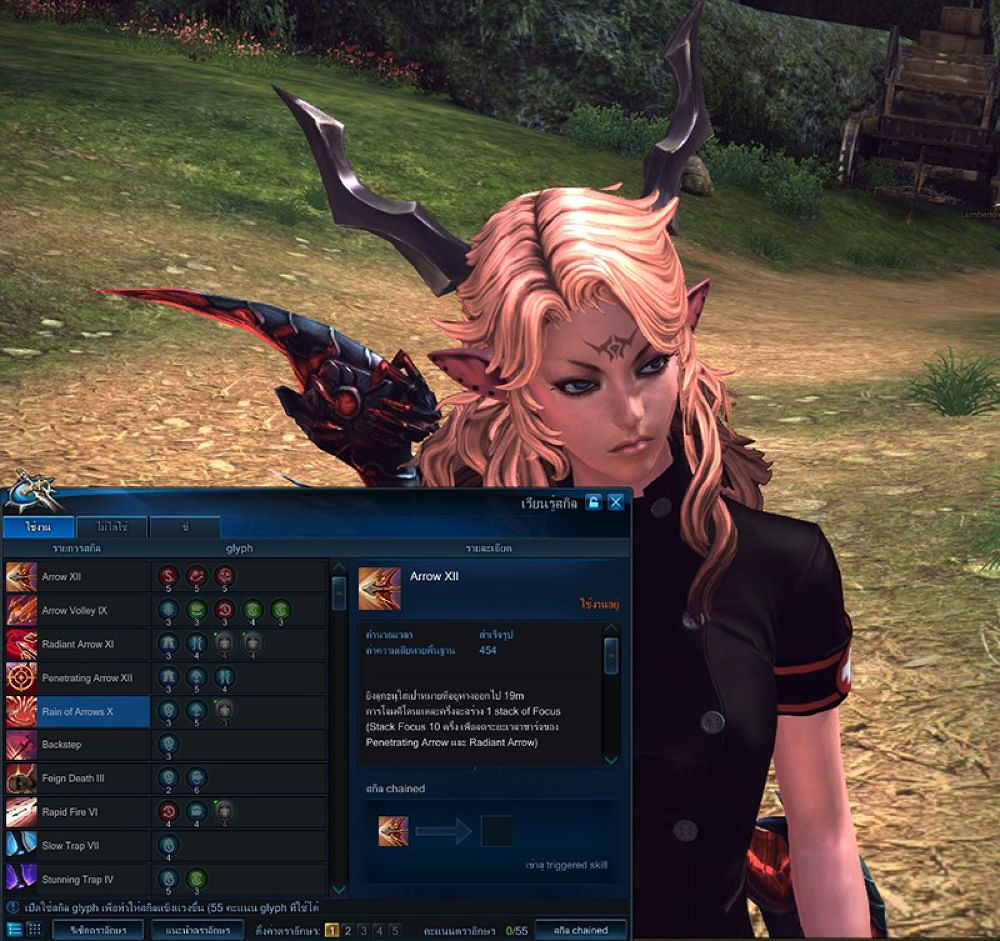 แม้ว่าการเล็งเป้าอาจจะยากไปบ้าง แต่ก็มาทดแทนด้วยการคอมโบสกิล ที่เรียกว่า “สกิลเชื่อมโยง” หรือ “Skill Chain” ที่ผู้เล่นสามารถตั้งค่าเลือกสกิล ให้เหมาะกับระยะเวลาคูลดาวน์ ทำให้สามารถใช้โจมตีได้ต่อเนื่อง เพียงแค่กดปุ่มปุ่มเดียว โดยแต่ละเผ่าก็จะมีลักษณะคอมโบที่แตกต่างกัน ช้าหรือเร็วก็หมั่นฝึกฝนให้ดี