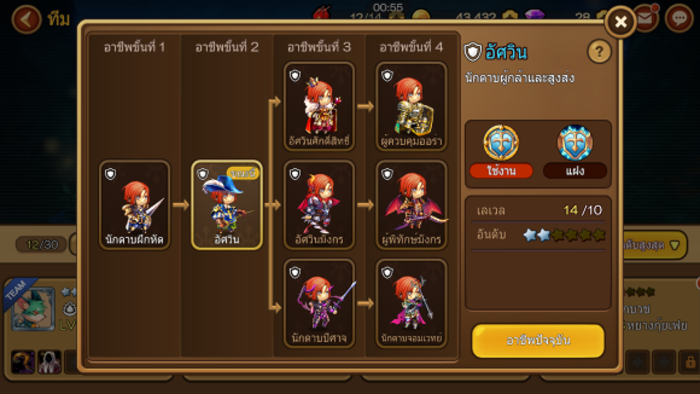 เราสามารถที่จะเปลี่ยนอาชีพได้หลากหลายตามความชอบของเรา โดยในบางตัวละครนั้นมีอาชีพที่สามารถเลือกได้หลากหลายมากๆ แต่บางตัวละครก็ อาจจะสามารถเปลี่ยนได้เพียงอาชีพเดียว โดยในการเปลี่ยนอาชีพนั้นตัวละครจะต้องมีเลเวลและไอเทมที่กำหนด ซึ่งแต่ละอาชีพนั้นก็จะมีความสามารถแฝงแตกต่างกันออกไปซึ่งเราต้องพิจารณาตามความเหมาะสม