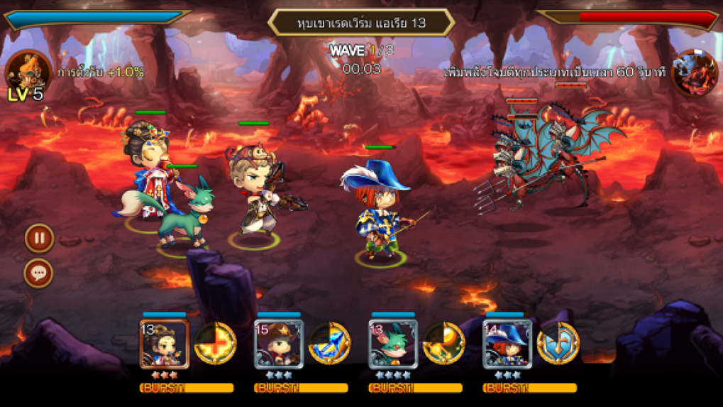 เราสามารถที่ชวนเพื่อนในไลน์ของเรามาช่วยกันปราบบอสสุดแกร่งได้แบบ Real-Time โดยในปาร์ตี้นึงจะมีผู้เล่นได้ 3 คน เท่ากับว่าเราจะได้เห็นผู้กล้าถึง 12 คนในการรุมบอสซึ่งต้องขอบอกไว้ก่อนเลยว่าบอสเนี่ยไม่ได้กระจอกเลย ขนาดรุมกัน 3 คนยังต้องใช้เวลากันสักพักเลยทีเดียว