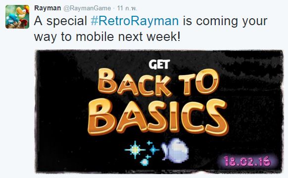 หลังจากที่ปล่อย Rayman ภาคใหม่ๆมาลงมือถืออยู่หลายภาคซึ่งเดาว่ากระแสตอบรับน่าจะเป็นไปในทางที่ดี Ubisoft จึงได้ทำการออกมาประกาศในแอคเคาท์ Twitter ของตนว่าในวันที่ 18 กุมพาพันธ์ที่จะถึงนี้จะนำ Rayman ภาคเก่ากลับมาบนมือถือ! ซึ่งรายละเอียดนั้นอยู่ตามภาพข้างล่างนี้เลย