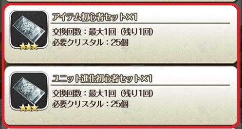 Newbie Evolution Set (ด้านล่าง) = ตั๋วหยอดตัวละคร 3 ดาวขึ้นไป 1 ใบ + ไอเทมสำหรับอีโวตัวละครทุกชนิดอย่างละ 5 ชิ้น