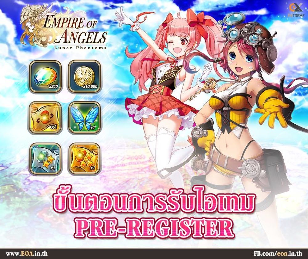 ผู้เล่นที่ทำการลงทะเบียนล่วงหน้าของเกมEmpireOf Angels ไว้สามารถดูขั้นตอนการรับไอเทมได้ที่ลิงค์นี้