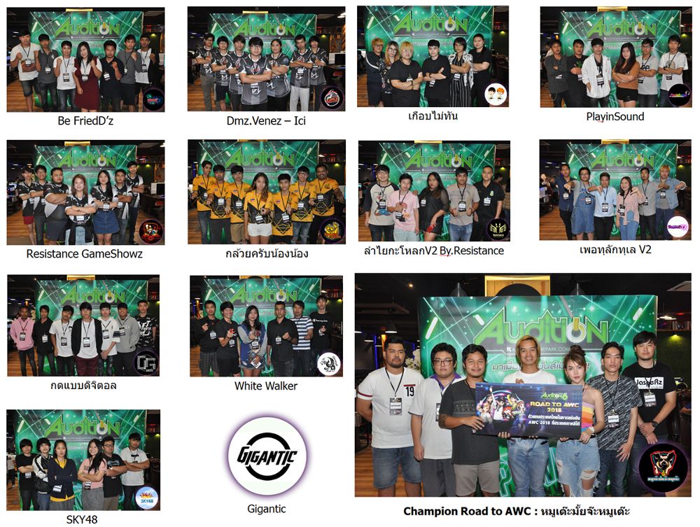 AUDITION เกมแดนซ์ออนไลน์จาก PLAYPARK ได้จัดการแข่งขันรายการ Road to AWC 2018 เมื่อวันเสาร์ที่ 6 ตุลาคมที่ผ่านมา ณ. ร้าน GSPEED LIVING PLUS ซอย รามคำแหง 53 เพื่อค้นหาตัวแทนทีมชาติไทยไปสู้ศึกระดับโลก “AUDITION WORLD CHAMPIONSHIP 2018” ที่ประเทศเกาหลีใต้ในเดือนพฤศจิกายนนี้ โดยมีทีมเข้าร่วมทั้งหมด 13 ทีมด้วยกันได้แก่ทีมดังนี้