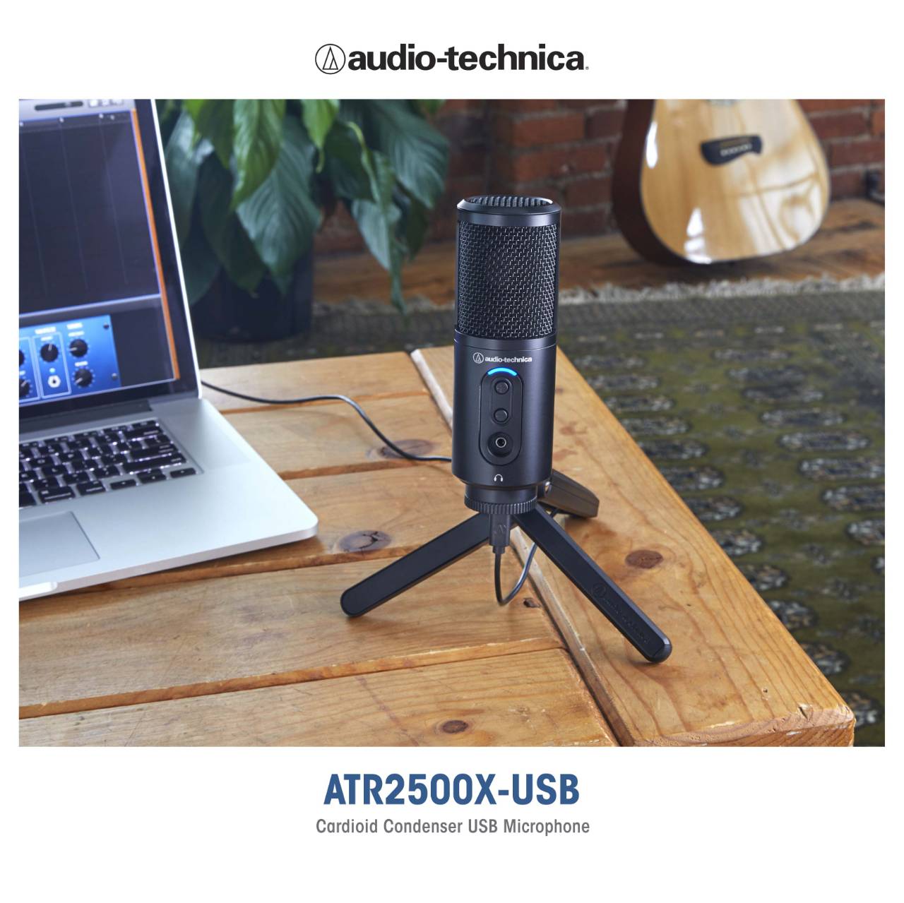 ATR2500X-USB เป็นไมโครโฟนแบบคอนเดนเซอร์ (Condenser Microphone) ซึ่งไมโครโฟนชนิดนี้ทำงานผ่าน USB และมีความไวเสียงสูง สามารถรับช่วงความถี่เสียงได้กว้างกว่าไมค์ไดนามิค เหมาะกับการใช้งานด้าน podcasting, home studio recording, voiceover และยังสามารถสำหรับใช้ในการทำคอนเท้นอื่นๆได้อีกด้วย เสียงที่ได้มีความชัดเจนเก็บรายละเอียดได้ดี ด้วยคุณภาพระดับ 24-bit, สูงสุด 192 kHz โดยสามารถใช้งานร่วมกับหูฟังได้เป็นอย่างดีด้วยช่องเสียบหูฟัง3.5mm.พร้อมปุ่มควบคุมระดับเสียงขึ้น-ลงให้สามารถควบคุมเสียงได้อย่างง่ายดายและยังสะดวกต่อการใช้งานมากยิ่งขึ้นด้วย ATR2500X-USB มาพร้อมกับสาย USB แบบ USB-C to USB-C และ USB-C to USB-A ทำให้สามารถใช้งานได้บนระบบปฏิบัติการ Windows และ Mac ได้ตัวไมโครโฟนผลิตมาจากโลหะ ให้ความแข็งแรงทนทาน มาพร้อมขาตั้ง 3 แฉกที่ใช้วางบนโต๊ะ โดย ATR2500X-USB วางจำหน่ายแล้วในราคา 3,790 บาท
