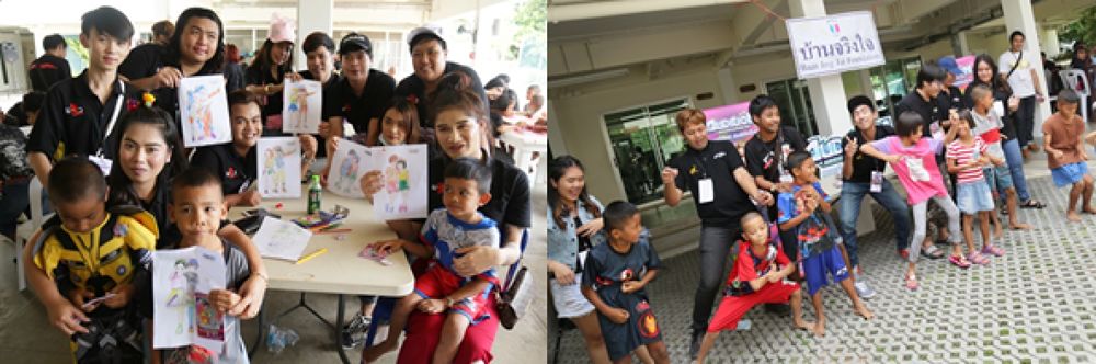 นอกจากการบริจาคสิ่งของแล้ว ยังมีเลี้ยงอาหารกลางวันน้องๆ และทำกิจกรรมร่วมกัน ไม่ว่าจะเป็นระบายสีตัวละครเกมออดิชั่น แถมยังมาโชว์สีลาแดนซ์กระจายกันใน “Audition แดนซ์ สิ จ๊ะ” อีกด้วย (ลีลาแต่ละคนเด็ดมาก ยอมใจเลยจริงๆ ค่ะ)