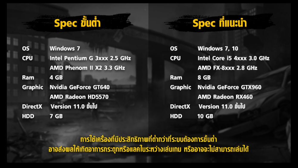 Spec ขั้นต่ำ และ Spec ที่แนะนำ