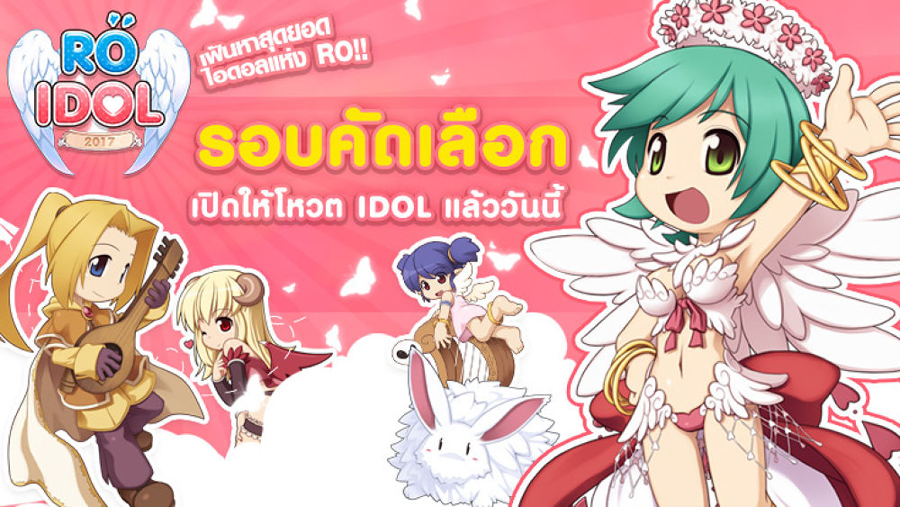 - ทุกๆ การเติมเงินครบ 50 บาท นอกจากจะได้รับ Kafra Point และรับไอเทมโปรโมชั่นตามปกติแล้ว ภายในช่วงระยะเวลาที่เปิดโหวต จะได้รับ Angeling Doll (อีกหนึ่งหน่วยการให้คะแนน) สำหรับใช้โหวต RO Idol เท่านั้น
