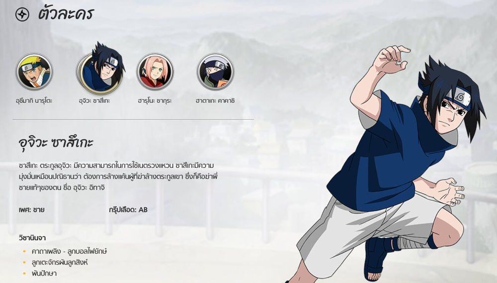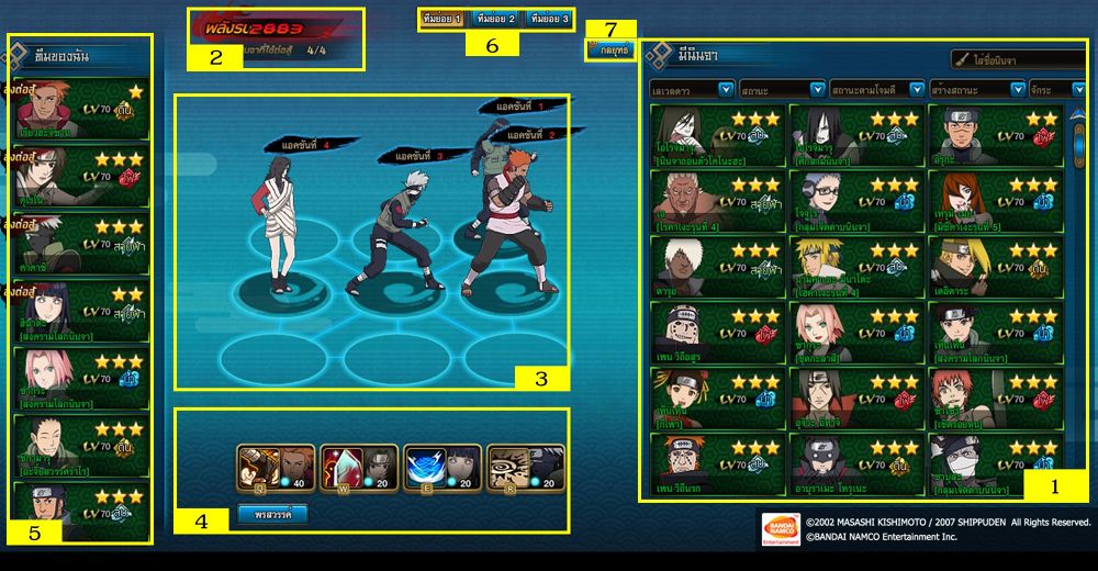4. รายละเอียดสกิลของนินจาภายในทีมที่ลงต่อสู้ เช่น สกิลและความสามารถต่างๆ