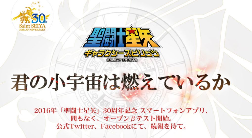 ดำเนินเข้าสู่อายุ 30 แล้วนะจ้า ! สำหรับซีรีส์เรื่องดังจากญี่ปุ่น SAINT SEIYA เนื่องด้วยการฉลองครบรอบ 30 ปีของการ์ตูนเรื่องนี้ทางบริษัทผู้พัฒนาเกม DeNA และ TOEI ANIMATION ได้ร่วมมือกันสร้างผลงานชิ้นใหม่ขึ้นมาในรูปแบบเกมมือถือที่มีชื่อว่า SAINT SEIYA: Galaxy Spirits『聖闘士星矢 ギャラクシースピリッツ』ซึ่งตัวเกมมีกำหนดเปิดบริการภายในปี 2016 นี้และกำหนดเปิดให้ร่วมลงทะเบียนล่วงหน้าเพื่อรับของฟรีเร็ว ๆ นี้ด้วย ! ใครสนใจตามมาดูรายละเอียดทางด้านนี้เลยจ้า