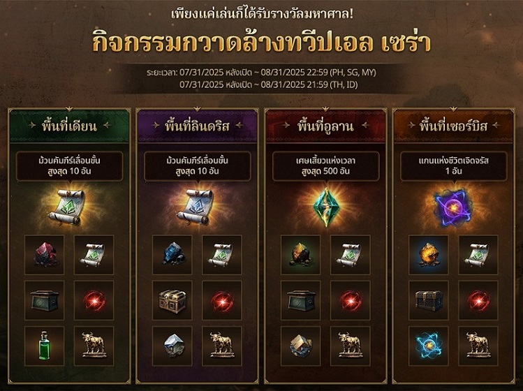 - กิจกรรม El Sera Continent Raid: ปราบบอสประจำภูมิภาคเพื่อรับรางวัลพรีเมียมสุดพิเศษ