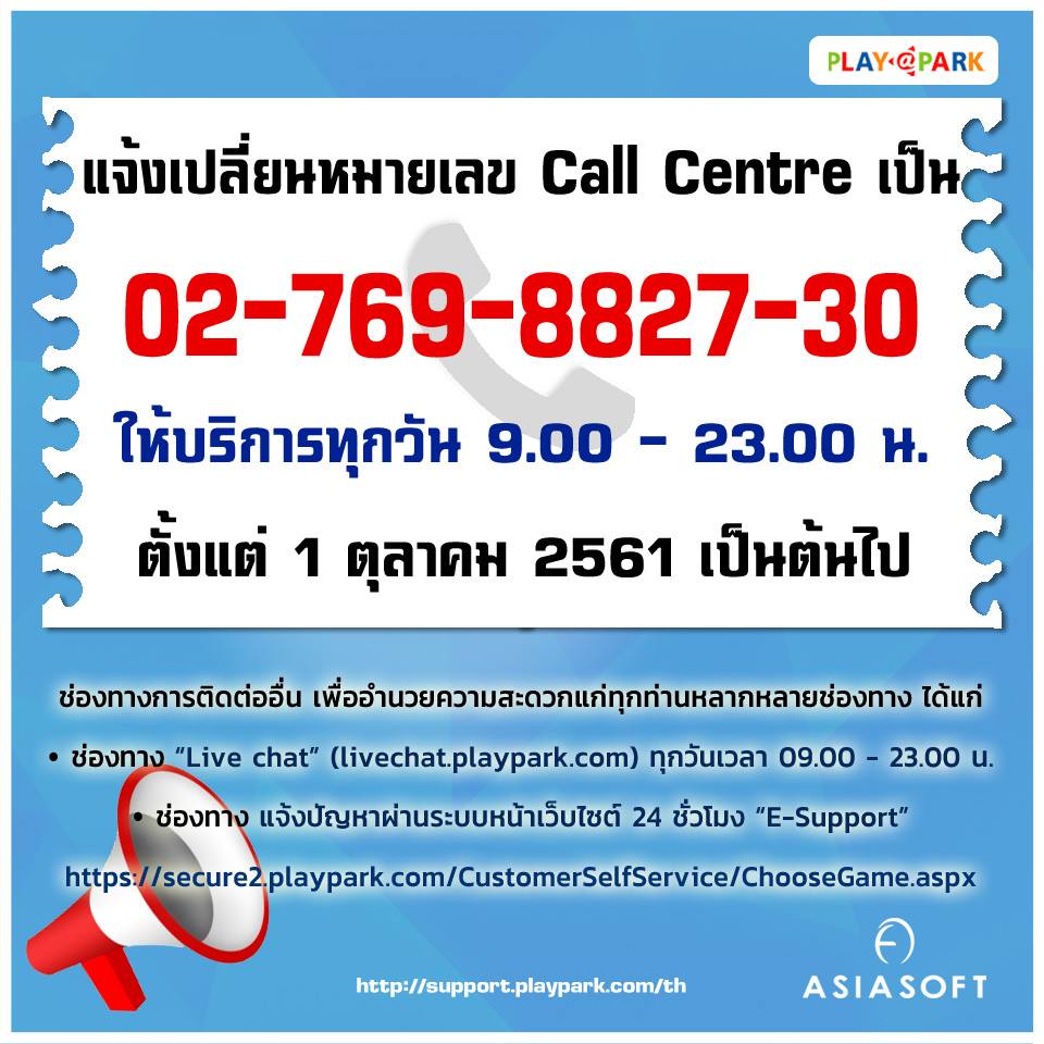 ASIASOFT เปลี่ยนเบอร์ Call Centre พร้อมขยายเวลาให้บริการแล้ว!!