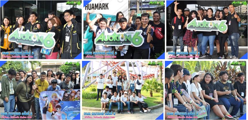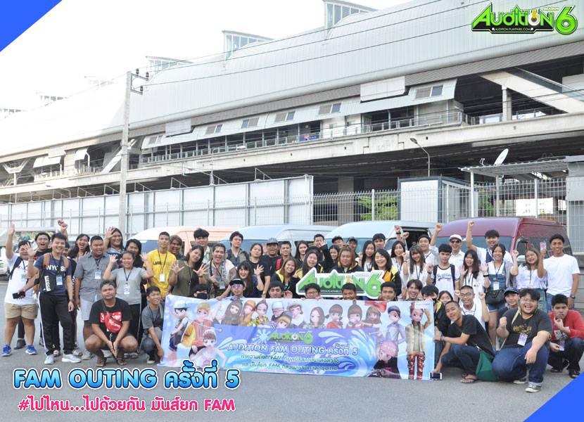 AUDITION เกมแดนซ์ออนไลน์จาก PLAYPARK ฉลองครบรอบ 12 ปี ได้จัดกิจกรรม FAM Outing ครั้งที่ 5 #ไปไหน…ไปด้วยกัน #มันส์ยกFAM ในวันที่ 24 พฤศจิกายนที่ผ่านมา มอบความสนุกให้กับผู้เล่นชาว AUDITION ตัวแทนทั้ง 6 FAM ผู้โชคดีที่ได้ไปร่วมทำบุญที่มูลนิธิสถาบันแสงสว่าง และปิดท้ายความสนุกสุดมันส์ที่สวนสยาม ทะเลกรุงเทพ แถมได้รับไอเทมแรร์อีกเพียบ! โดยเริ่มแรก เรามาทำความรู้จักกับ 6 FAM ผู้โชคดีที่ได้ไป FAM Outing ครั้งนี้กันเลย